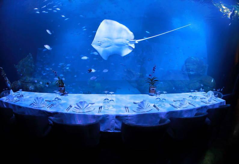 Можно устроить целый прием под водой!Ресторан под водой в Aquaria