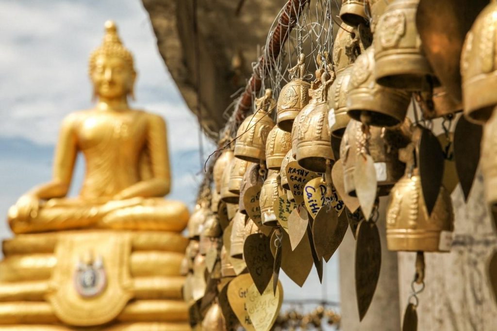 Около ступенек в храме, под навесом со статуями, буддийский монах должен повязать желающим подняться к статуе верёвочку на руку: мужчинам на правую, женщинам на левую. Веревочки эти, согласно общедоступной информации вбирают из тех кто их носит всё негативное.